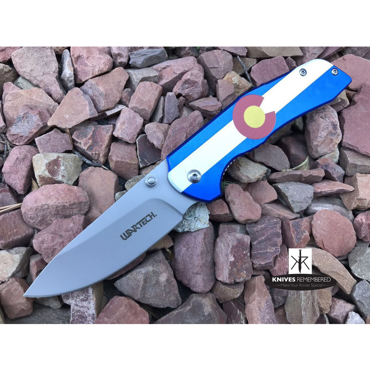 - 8" TACTICAL HUNTING Pocket Folding OUTDOOR Knife Assisted Open Drop Point Blade Colorado Flag - CUSTOM ENGRAVED
